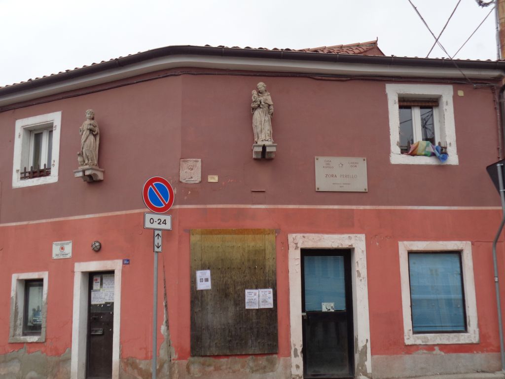 Najprej trg – PLACA, trapezoidne oblike. Na severni strani trg varuje mogočni KAŠTEL s tremi obrambnimi stolpi in četrto stranjo, ki je posebnost, saj je v njej bivalna PALAČA. Vse povezuje obzidje, ki ima z notranje strani po celotni dolžini balkon in line za opazovanje. V enem izmed stolpov na trg gleda MESTNA URA, katere posebnost je, da ima označenih vseh 24 ur. Na južni strani je nekaj renesančnih palač, ki se povezujejo z LOŽO (18.stol.). Na vzhodu sega trg do župnijske CERKEV MARIJINEGA OZNANJENJA, ki se ponaša z renesančno fasado, petimi marmornimi oltarji in oltarnimi slikami. Za to podobo mestnega središča sta zaslužni lastnici, družini MOROSINI – GRIMANI (plemenita beneška družina).
