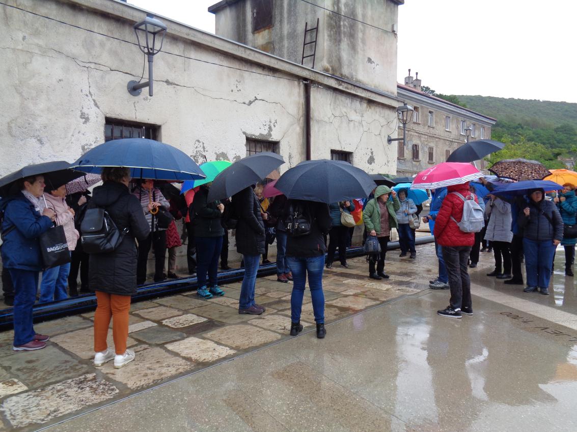 Kljub nič obetavni vremenski napovedi smo se odpeljali v Bakar, mesto, pristanišče ob istoimenskem zalivu, le 15 km oddaljeno od Reke. Na vhodu v mesto nas je že čakal vodič gospod, prof. Bora Štrbac. Rahel dež nas je prisilil, da smo odprli dežnike, a nas pri spoznavanju kraja ni motil.