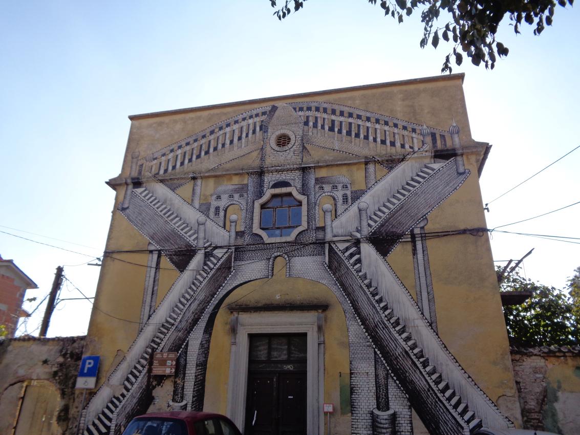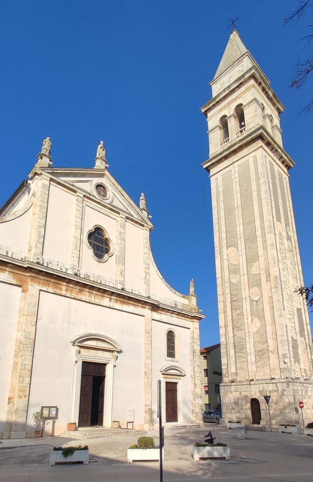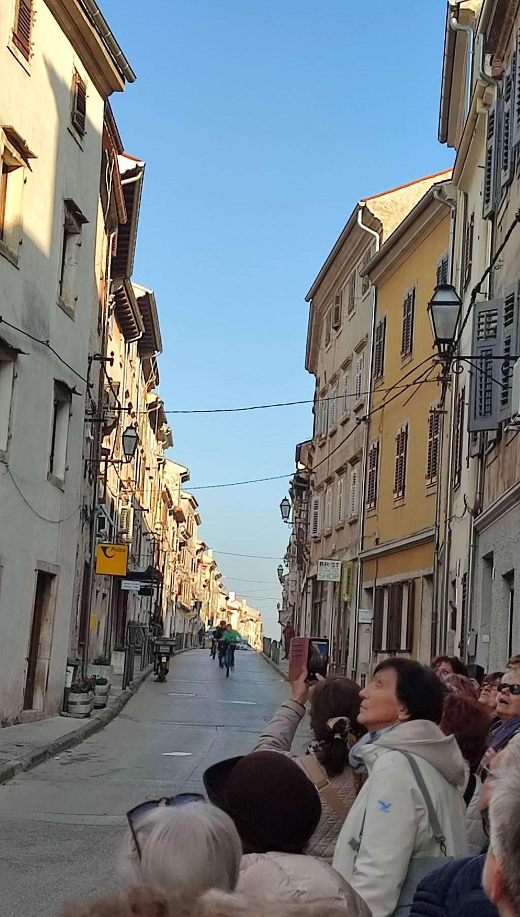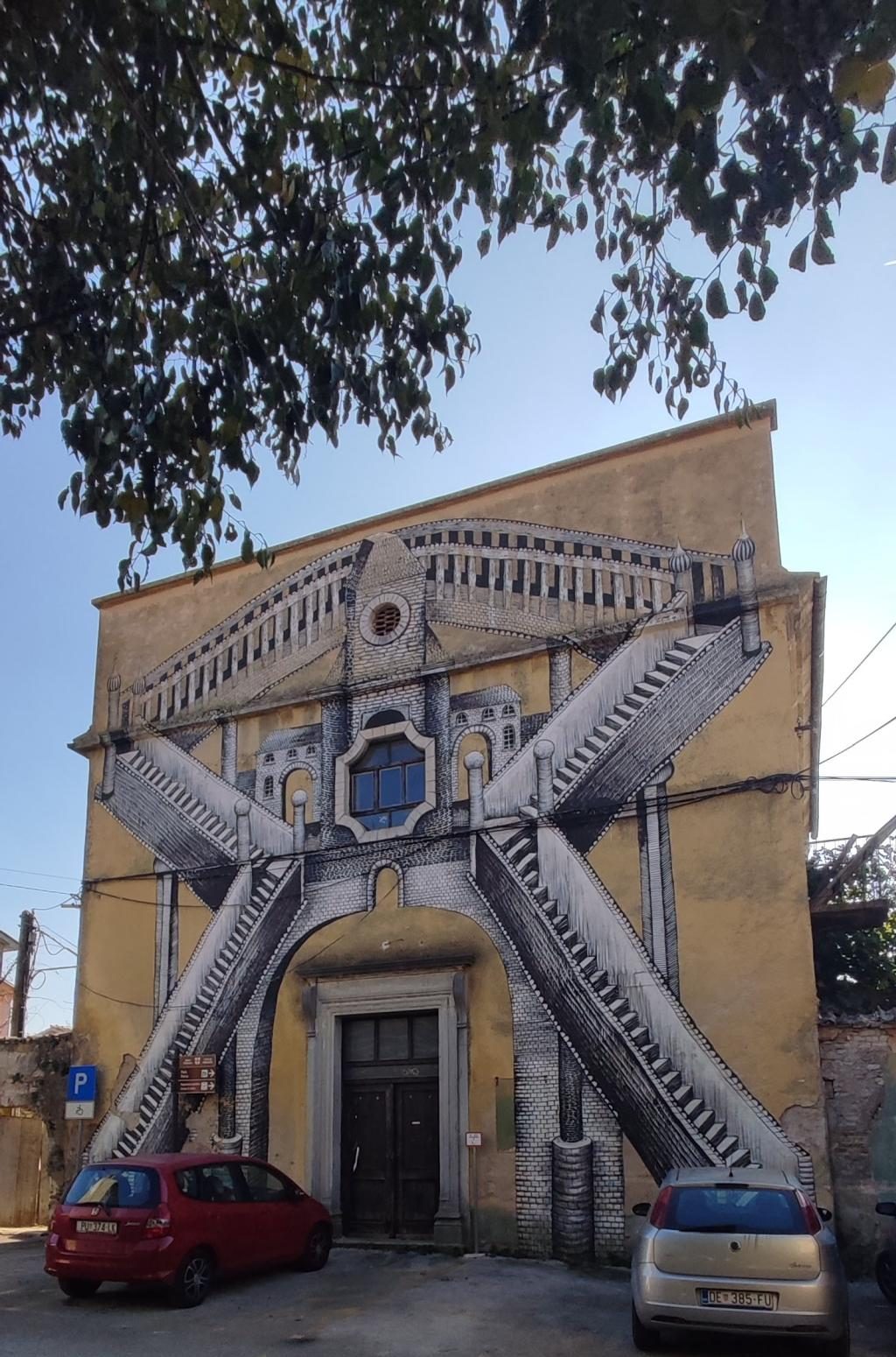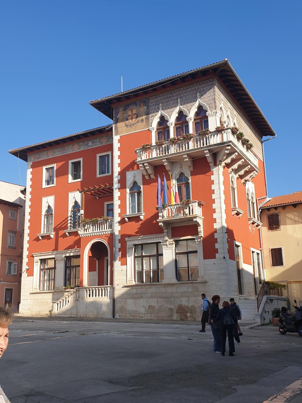 Na parkirišču nas je že čakala vodička Morena Matijaš in nam predstavila načrt ogleda »svojega« mesta. Že po prvih korakih smo lahko sklepali, da to ni običajno srednjeveško mestece. Leži na komaj 135 m nadmorske višine, kar nam bo olajšalo hojo, ni obzidja, ni kaštela. Bodo pa cerkvice, z murali poslikana pročelja, ki popestrijo kamnite mestne hiše.