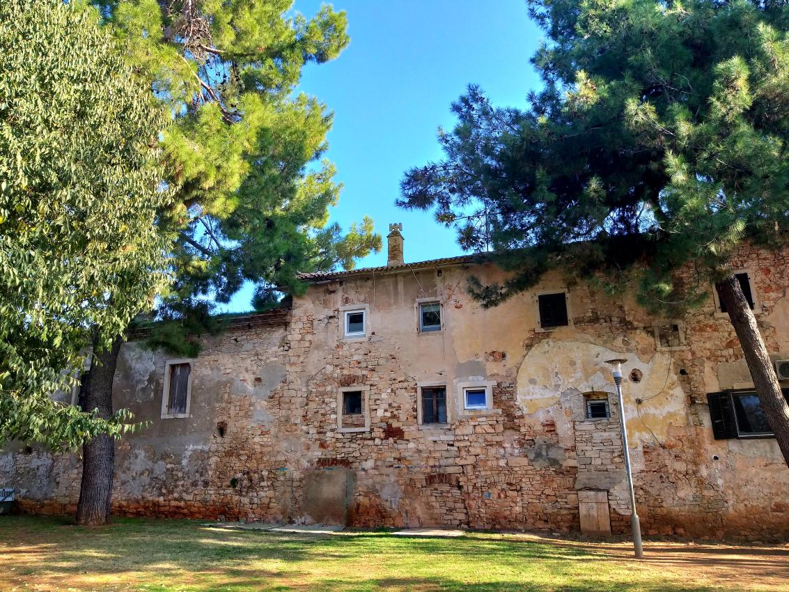Spoznavanje mesta (šele od leta 2003) smo začeli skozi park. Spremljal nas je otroški živžav na igralih in mogočno, neugledno poslopje. Zvedeli smo, da je to del nekdanjega kapucinskega samostana, katerega izgradnjo so meščani financirali sami. Po prihodu v Istro so samostan ukinili Francozi. Spremenjen je bil v vojaško bolnišnico, karanteno za obolele od malarije. V novejšem času so bili v njem vrtec, kinodvorana, nazadnje pa stanovanja. Samostanski zid so zrušili in spremenili v mestni park. Mimogrede smo prišli na osrednji mestni trg, kjer smo spili opoldansko kavo.