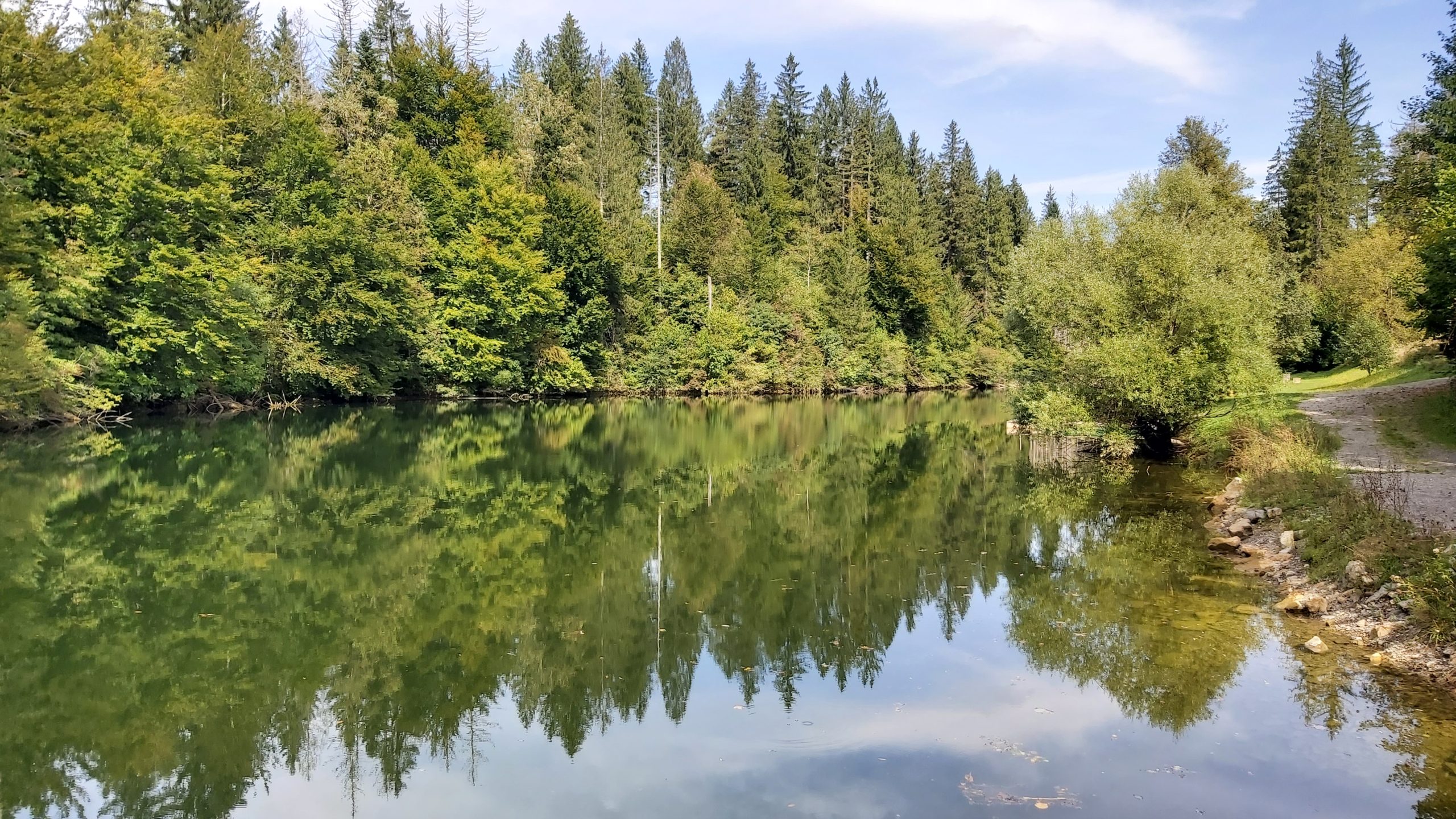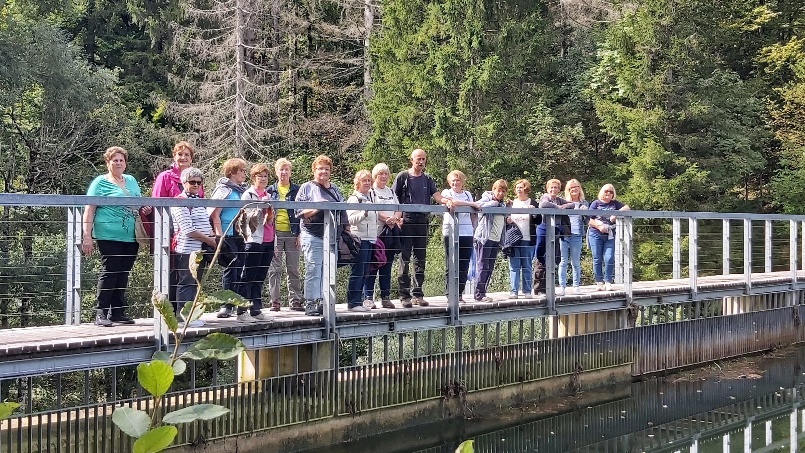 S turističnim vodnikom smo se odpravili na sprehod skozi Kočevsko Reko in si ogledali moderno cerkev Sv. Janeza Krstnika, ki nas je očarala s svojo skromno- a mojstrsko dovršeno opremo: lesenimi izdelki, vitraži ter ohranjenimi drobci iz cerkve, ki je bila v preteklosti porušena. Najdebelejši oreh danes ni v najboljšem zdravstvenem stanju, a si zasluži svoje ime. Mimogrede smo izvedeli še podatke o zgodovini tega kraja od davnega 1457 dalje, priseljevanju ter izseljevanju ter preseljevanju pred drugo svetovno vojno, pa o zaprtem območju med 1950 do 1990 in času do danes. Krajani so v zadnjem času ponosni tudi na svoje jezero, okoli katerega so speljali lepo sprehajalno pot. (Mogoče ideja za podobno pot okoli „naših“ jezer?). Vreme nam je zelo dobro služilo, zato smo napravili kar nekaj odličnih posnetkov.