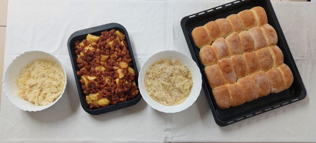 Jedi so pripravljale s srcem in z velikim veseljem, tako da jim je vse odlično uspelo in v kuhinji je zadišal omamen vonj po domačih ocvirkih in kruhu.